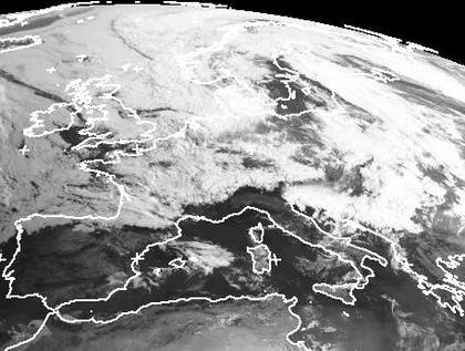 Während mit einer westlichen oder nordwestlichen Strömung immer wieder viele dichte Wolken, teils mit Regen, nach Deutschland gelangen, findet man am Mittelmeer nur wenige lockere Wolken. Hier bestimmt Hiochdruckeinfluss das Wetter. Zum Wochenende verlagert sich jedoch das Hoch 'Andrea' vom westlichen Mittlemeerraum nordwärts nach Deutschland. Damit wird auch das Wetter bei uns dem am Mittelmeer sehr ähnlich. (Bildquelle: NERC Satellite Receiving Station, Dundee University, Scotland, http://www.sat.dundee.ac.uk/)