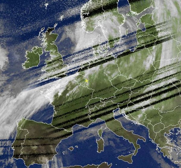Das Satellitenfoto von heute Nachmittag zeigt ein breites und kräftiges Wolkenband von der Biskaya, über den Norden Frankreichs, weite Teile Großbritanniens, über die Nordsee bis nach Skandinavien. Der Ausläufer, der in den Regionen verbreitet nasses, windiges, jedoch recht mildes Wetter bring, gehört zum Tief "Karin" über dem Atlantik.