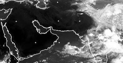 Das Satellitenbild von Mittwoch Mittag zeigt, dass in Südwestasien kaum Wolken am Himmel sind. Zudem ist die dunkle Landmasse ein Hinweis darauf, dass es hier auch ziemlich heiß ist, da höhere Temperaturen auf Infrarotbildern dunkler dargestellt werden. Gut zu erkennen ist auch der Himalaya mit seinen Gletschern, über dem sich nur wenig Bewölkung befindet. Über Indien sorgen die südwestlichen Monsunwinde dagegen wieder für mehr Wolken und Regen. (Bildquelle: NERC Satellite Receiving Station, Dundee University, Scotland, http://www.sat.dundee.ac.uk/)