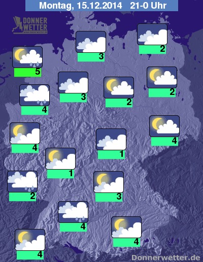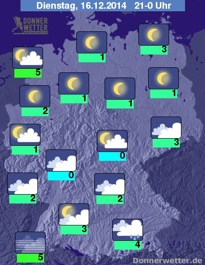 In der Nacht auf Dienstag klart der Himmel dann vor allem im Norden häufig auf, der Süden gibt sich deutlich bewölkter.