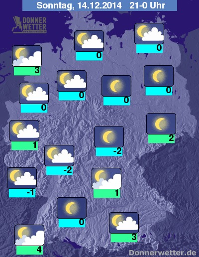 Kühler, aber deutlich wolkenärmer zeigt sich dann die Nacht auf Montag. Vor allem im Osten klart der Himmel häufig auf, Tiefstwerte um 4 bis -2 Grad C.