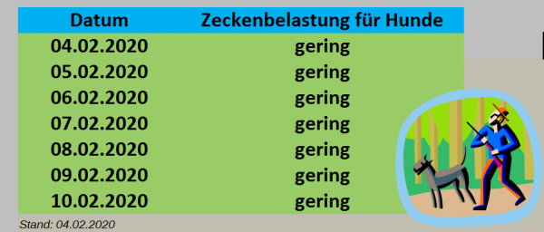 In der zweiten Wochenhälfte erreichen die Tiefsttemperaturen in den Nächten im Süden Werte um die Minus-5-Grad-Marke. Für Hundezecken in den Hauptrisikogebieten mehr als schädliche Bedingungen...