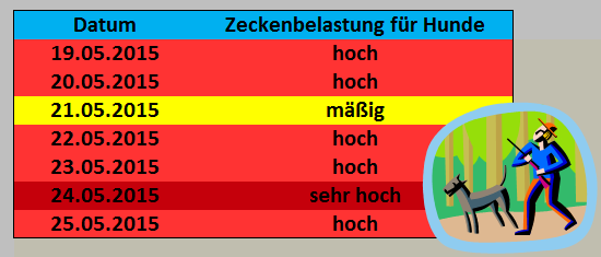 Da es bei 15-20 Grad C immer wieder regnet, bleiben die Zahlen hoch. Nur in den Mittelgebirgen sind die Temperaturen etwas zu niedrig für hohe Zeckenzahlen.