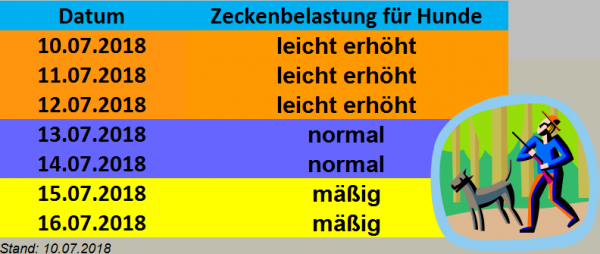 Unsere Hundezeckenprognose bis zum 16.07.2018