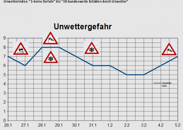 In der kommenden Wetterwoche dürfte das sehr ruhige Hochdruckwetter der Vorwoche wohl der Vergangenheit angehören. Es ziehen wieder vermehrt Tiefausläufer mit verbreitet nasskalten Luftmassen und Schnee, Schneeregen und teils gefrierenden Regen von West nach Ost übers Land hinweg. Nach den jetzigen Computermodellen dürfte zur Wochenmitte hin auch wieder ein Sturmfeld das Land treffen, dazu ist stürmischer Wind mit vereinzelten Sturmböen möglich. Auf den Bergen und an der See könnten sich teils orkanartige Böen entwickeln. Zum Wochenende hin beruhigt sich das Wetter kaum, es ziehen immer wieder Tiefausläufer mit nasskalten Luftmassen herein, dabei fällt oft bis ins Flachland hinein Schnee.