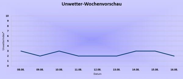 Die Gefahr durch mögliche Unwetter bleibt für die laufende Wetterwoche weitestgehend auf niedrigem Niveau. Es bleibt zwar insgesamt oft wechselhaft mit Sonnenschein und auch teils dichten Wolken und zeitweiligen Regenfällen. Gewitter sind allerdings nur gelegentlich zu erwarten und in ihrer Intensität auch nicht besonders stark.