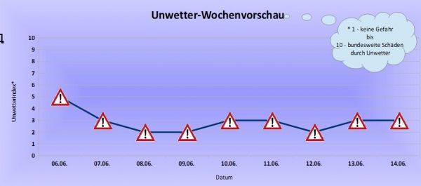 Die kommende Wetterwoche dürfte nach Berechnung der aktuellen Prognosemodellläufe doch deutlich entspannter, trockener und sonniger werden. Am Montag und eventuell auch am Dienstag besteht jedoch vor allem in den südwestlichen Landesteilen, sowie im Alpenvorland noch ein zum Teil hohes Gewitterrisiko. In den darauffolgenden Tagen herrscht dann jedoch überwiegend freundliches und trockenes Wetter mit frühsommerlichen bis sommerlichen Temperaturen. Ein leichtes Gewitterrisiko mit vereinzelten Gewittern bleibt uns jedoch erhalten.