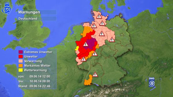 Über den Nordwesten ziehen teilweise schwere Gewitter hinweg, Es bestehen aktuell Unwetterwarnungen für Nordrhein.Westfalen. Vorwarnungen gibt es für den gesamten Nordwesten: