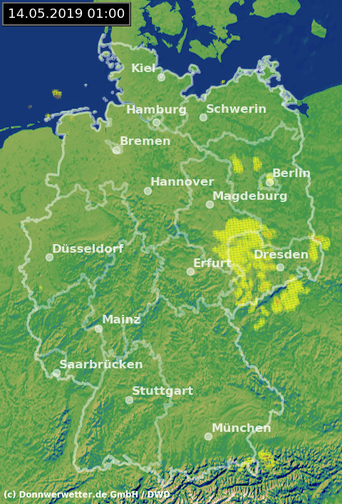 Radarbild von Dienstag, 14.05.2019 um 01.00 Uhr