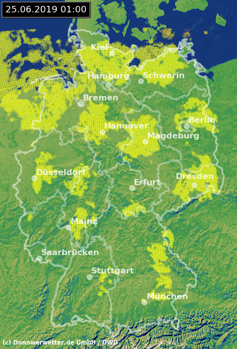 Radarbild von Dienstag, 25.06.2019 um 01.00 Uhr