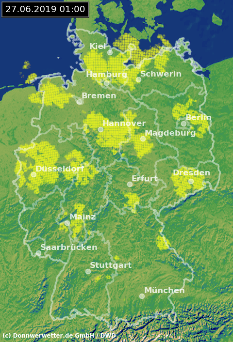 Radarbild von Donnerstag, 27.06.2019 um 01.00 Uhr
