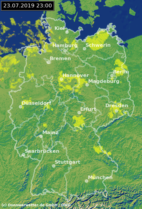 Radarbild von Dienstag, 23.07.2019 um 23.00 Uhr