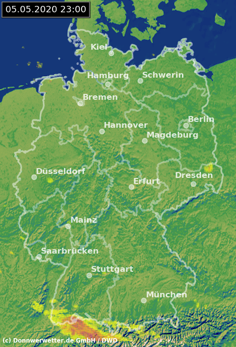 Radarbild von Dienstag, 05.05.2020 um 23.00 Uhr