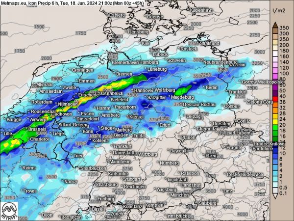 Bevor es soweit ist, stehen uns am Dienstag in einigen Landesteilen aber nochmals anhaltende Regenfälle an einer Front bevor, die sich von den Niederlanden über das nördliche NRW bis nach Niedersachsen erstreckt.