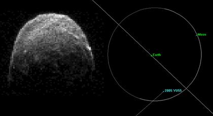 Mit einem Durchmesser von 400 Metern ist er etwa so groß wie ein Flugzeugträger. Wenn er auf die Erde treffen würde, wäre der Schaden schon verdammt ordentlich... Aber der Asteroid 2005 YU55 rast glücklicherweise an der Erde vorbei. Dabei kommt er uns aber gegen 0:28 Uhr in der Nacht zu Mittwoch mit einem Abstand von 319.000 Kilometern näher als der Mond!