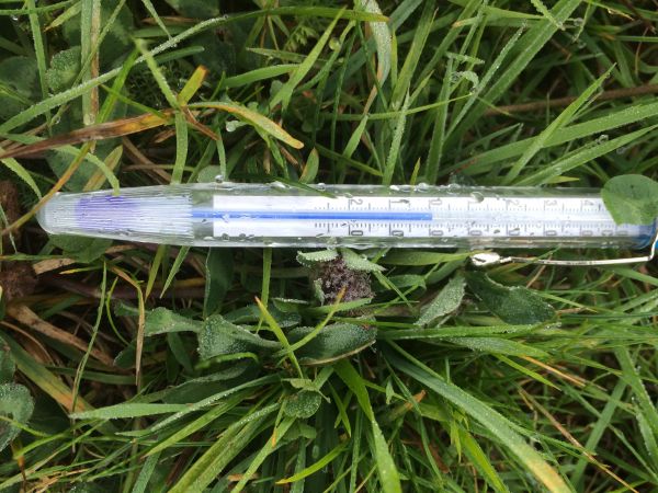 Extreme am Donnerwetter.de-Wetterpark in der Eifel. Heute morgen gab es in den Tälern Frost (siehe Bild). Nun werden 23 Grad C erwartet. Übrigens gibt es heute eine Führung um 15 Uhr bei Superwetter rund um unseren Park