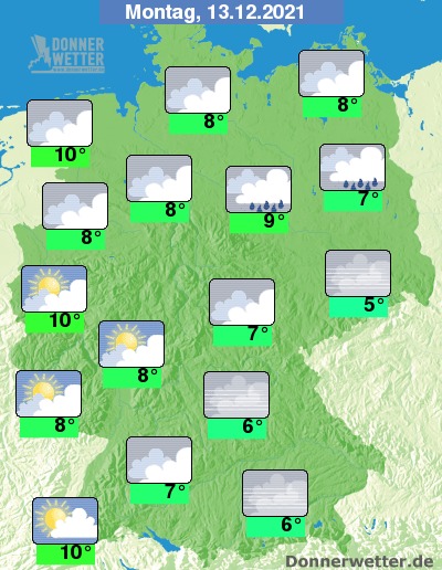 Wo in der Vorweihnachtswoche noch keine Festtagsstimmung aufgekommen ist, dort wird auch das Wetter nicht seinen Teil dazu beitragen: Statt Flockenromantik und klirrender Kälte begleiten uns über weite Teile der Woche nämlich dichte Wolken oder nebeliges trübes Dezemberwetter. Schauer sind nur selten mit von der Partie. Die Temperaturen - alles andere als dezemberlich!
