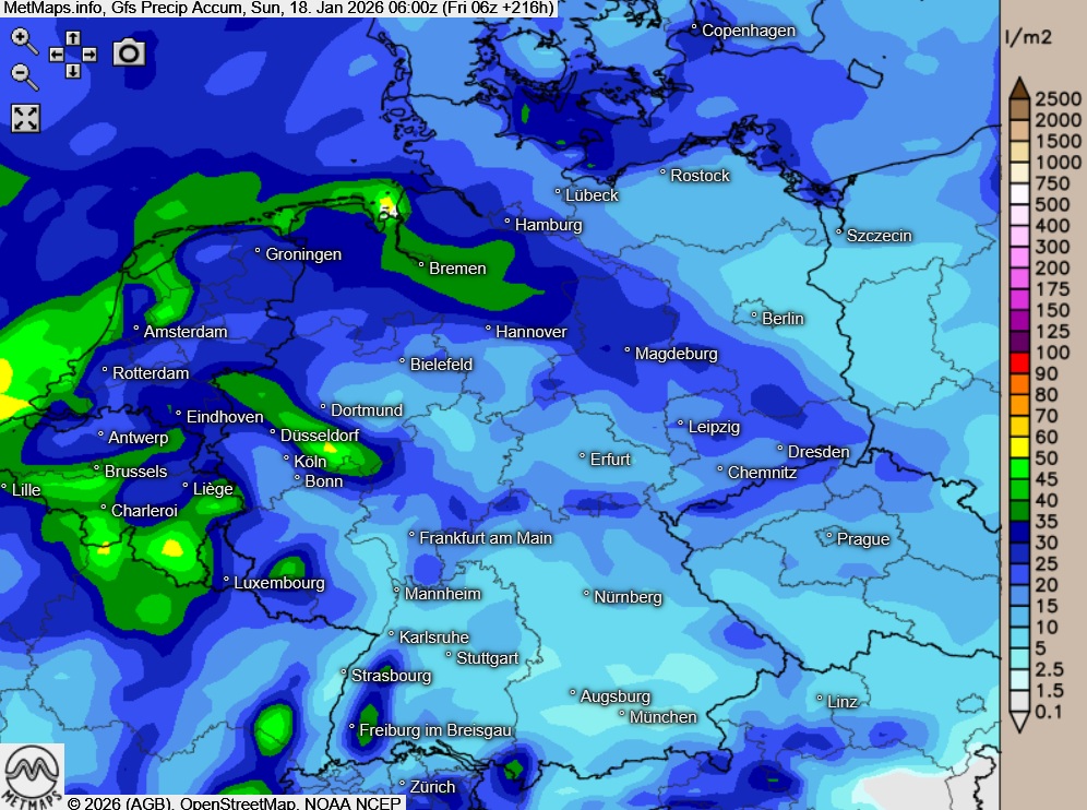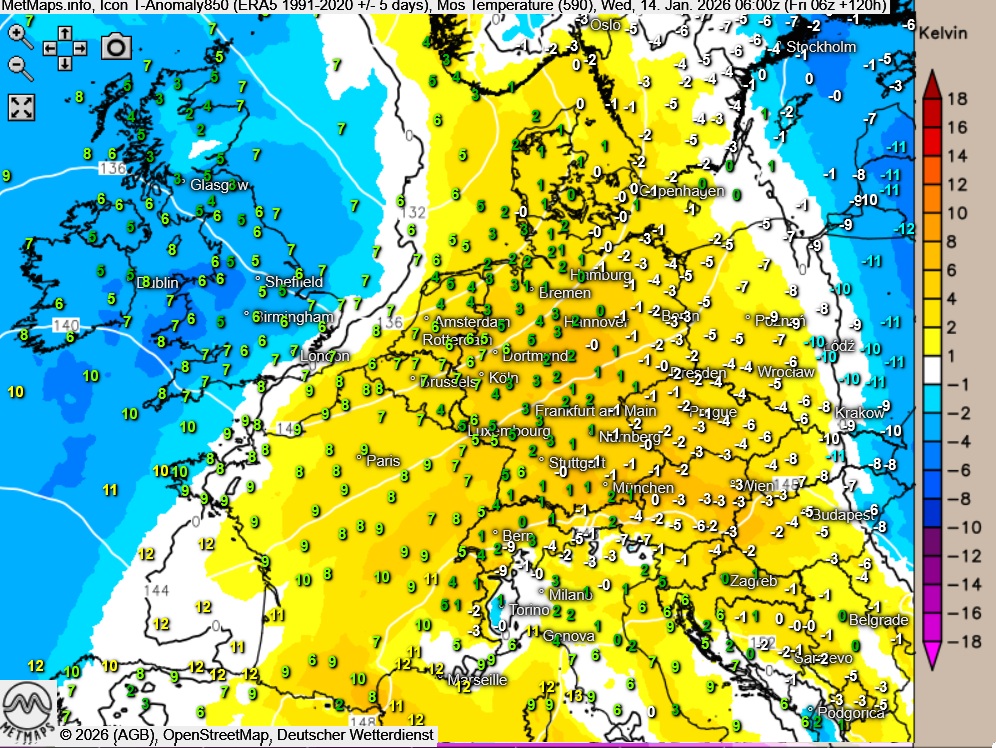 Über weite Teile der zweiten Wochenhälfte erwartet uns dann zumeist graues aber weitgehend niederschlagsfreies und somit unaufgeregtes Januarwetter mit allenfalls leichten Nachtfrösten.