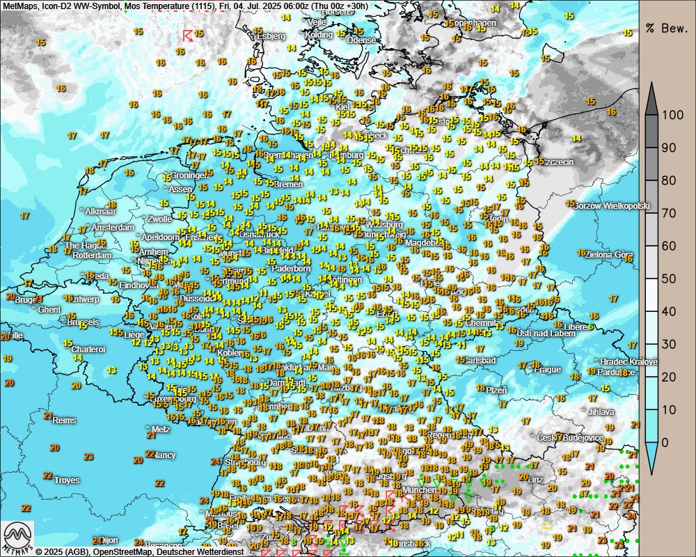 Die ICON-Prognosen für heute und morgen mit angenehmeren Temperaturen:
