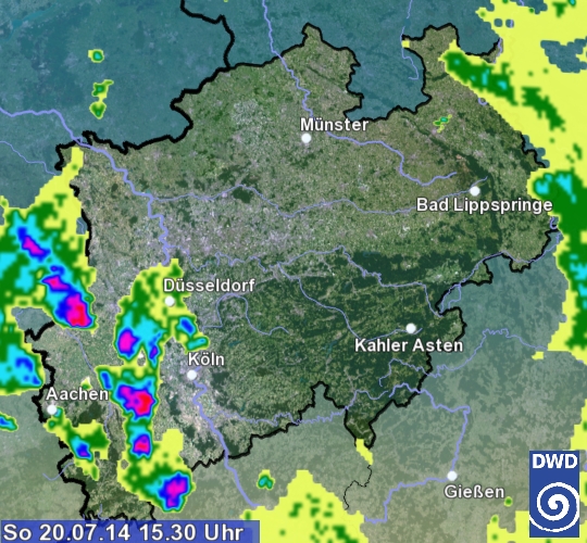 In Nordrhein-Westfalen ziehen die ersten kräftigen Gewitter durch den Westen: