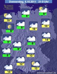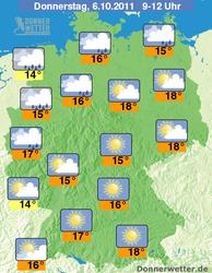 Bis zum Mittag kann es entlang einer Linie von Nordrhein-Westfalen über Niedersachsen, Sachsen-Anhalt bis nach Mecklenburg-Vorpommern kräftig regnen, während im Süden Deutschlands und im Osten sogar teilweise noch die Sonne scheint. Der Wind nimmt im Laufe des Vormittags zu, in der Nordhälfte kann es einzelne stürmische Böen geben, in den Mittelgebirgen und an der Küste auch Sturmböen, oder einzelne schwere Sturmböen.