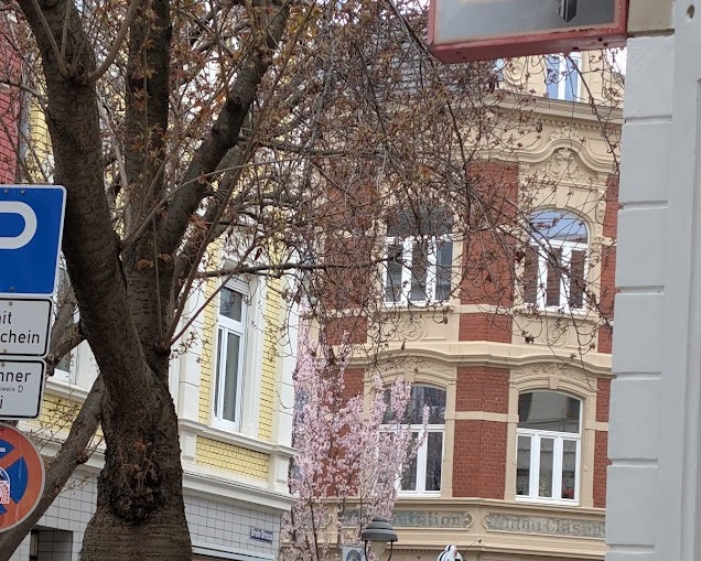 So wie auf unseren Fotos aus der Bonner Altstadt steht die Vollblüte der Kirsche kurz bevor. Die beiden sonnig-warmen nächsten Tage geben der Blütenentwicklung nochmals einen ordentlichen Schub: Bereits am kommenden Wochenende dürften viele der Kirschbäume schon ein dichteres rosa Blütengewand tragen als aktuell.
