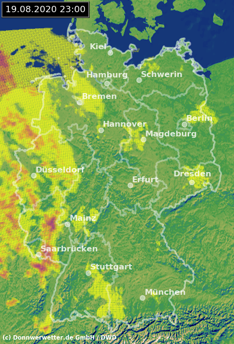 Radarbild von Mittwoch, 19.08.2020 um 23.00 Uhr
