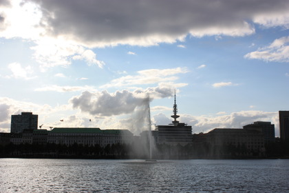 Ein Zwischenhoch bestimmt unser Wetter am Dienstag. Die Regenwolken ziehen am Alpenrand am Vormittag ab. Nur in Schleswig-Holstein und an Nord- und Ostsee fallen noch einzelne Schauer im Tagesverlauf. Ganz im Westen gibt es dann auch zum Abend wieder neuen Regen. Nutzen Sie den Sonnentag bei Werten um 10 Grad C. Unser Photo zeigt die Binnenalster in Hamburg bei wechselnder Bewölkung, wie wir sie morgen erwarten.