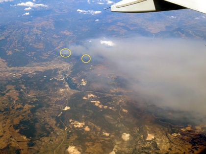 In Deutschland besteht nach drei Wochen Trockenheit extreme Waldbrandgefahr. Im Schwarzwald kam es schon zu Bränden durch Zigarettenstummel, die aus dem Auto geworfen wurden. Die Bilder zeigen einen Waldbrand aus dem Flugzeug in 10 km Höhe heute über der Türkei. Gelb markiert sind die eigentlichen Feuer.Die Rauchwolke dehnt sich über bis zu 100 km aus.