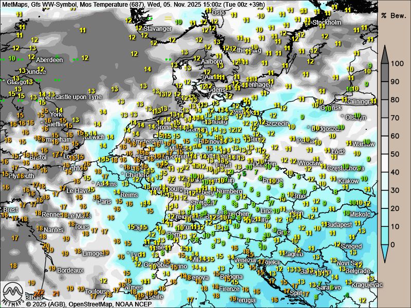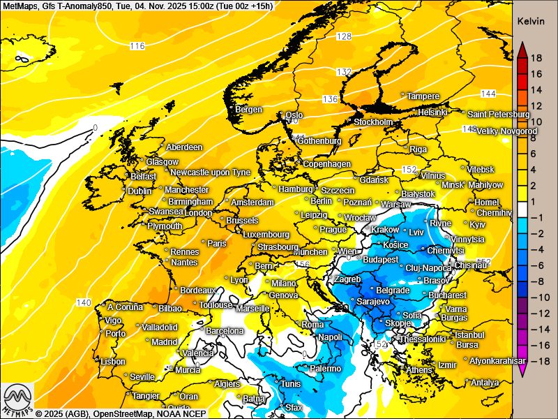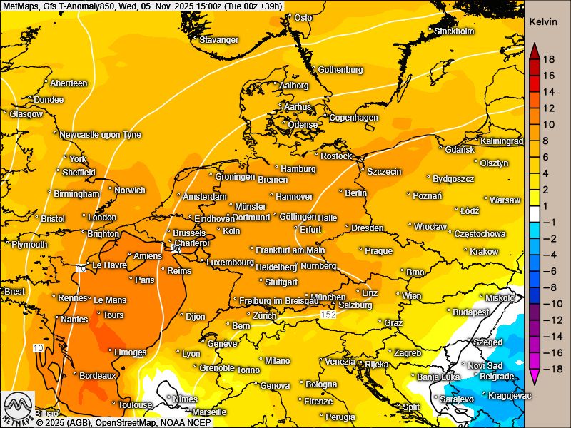 In den nächsten Tagen kommt 15 Grad warme Höhenluft (1.500 m Höhe) zu uns - eine Warmluftzufuhr, die für den November erstaunlich ist! Im Sommer hätten wir bei dieser Wetterlage mit Temperaturen von 35 Grad und mehr zu tun.