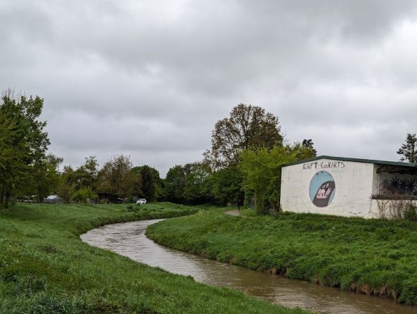 Nicht nur sportlich bescherte uns der Tag bei wechselhaftem Aprilwetter mit Starkregen, Graupel und nasser Kälte eine Lehrstunde; entlang der vollen und braunen Erft gab es beim Besuch des Tennisclubs Rot-Weiß Bliesheim e.V. 1976. zudem auch Einblicke in das Leben "drei Jahre nach der Flut".