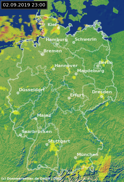Radarbild von Montag, 02.09.2019 um 23.00 Uhr