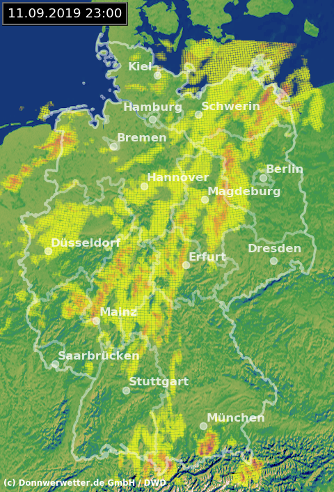 Radarbild von Mittwoch, 11.09.2019 um 23.00 Uhr