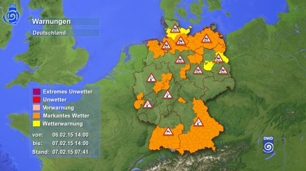 An den Küsten und in Hamburg fällt zum Teil gefrierender Schneeregen und Sprühregen. Achtung - es ist sehr glatt. Das Niederschlagsband wandert weiter nach Süden.