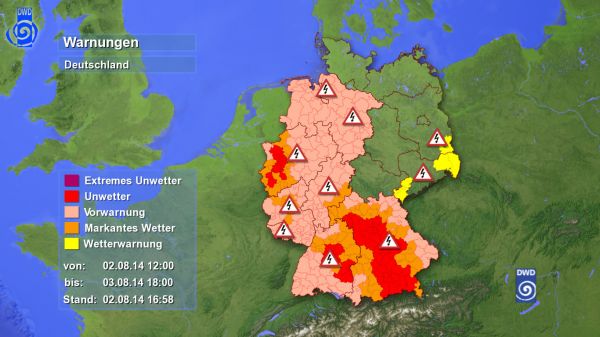 Besonders im Westen und Süden sind viele Warnungen bis zum Abend aktiv.
