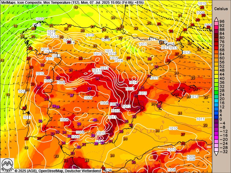Spanien und Griechenland: Stellenweise Temperaturen um 40 Grad am Wochenende und zu Beginn der neuen Woche.