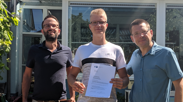 Mit erfolgreich abgelegter mündlicher Prüfung vor der IHK Bonn / Rhein-Sieg beendet unser Azubi Sebastian Müller nach zwei erfolgreichen Jahren seine Ausbildung zum Kaufmann für Büromanagement.