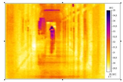 Wärmebildaufnahmen aus dem Jahr 2009 aus einem Krankenhaus in Bonn (im Flur) im nicht ganz so heissen Juli 2009.