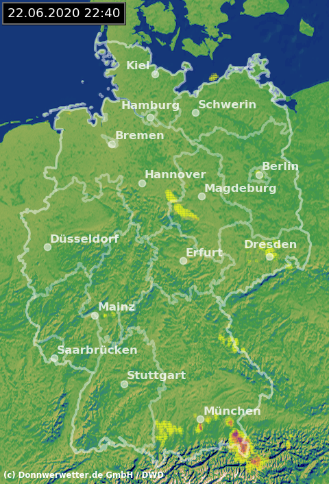 Radarbild von Montag, 22.06.2020 um 22.40 Uhr