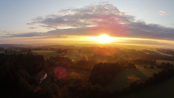 In den Städten geht es mit 10 Grad C in den Tag. In den Mittelgebirgen werden nur 3-6 Grad C gemessen. Meist ist es heute heiter, neben seltenen Schauern. Unser Drohnenbild vom Sonnenaufgang am Donnerwetter.de Wetterpark in der Eifel.