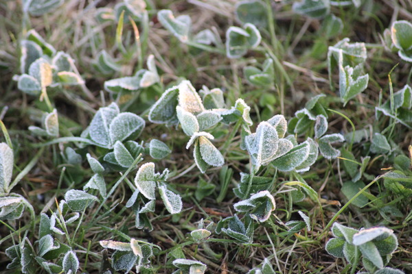 In vielen Teilen Deutschlands hat sich am Boden Reif gebildet. Die Photos wurden um 6 Uhr heute Morgen am Donnerwetter.de Wetterpark in der Eifel aufgenommen. Tagsüber ist überall schön, nur im Norden mischen sich ein paar Wolken ein. Mehr als 15 Grad C sind nicht zu erwarten.