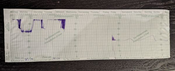 Das Foto zeigt den Schrieb unserer Fuess-Tauwaage in Bonn über das Wochenende: