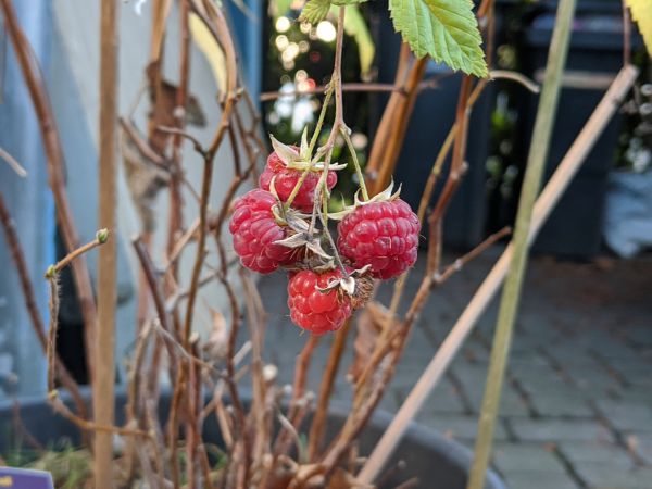 Frische Himbeeren in der zweiten Dezemberhälfte.