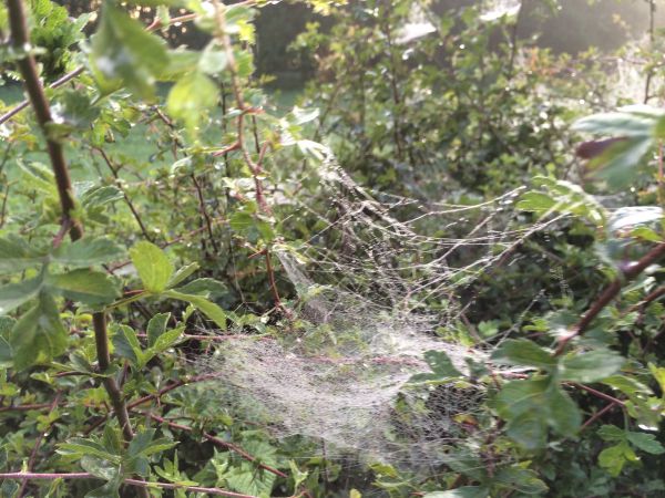 Morgens wirkt es schon wie im Herbst. Die Spinnennetze tragen Tautropfen. Nebel wabern.... Lange ist es ja auch bis zum Herbst nicht mehr hin...