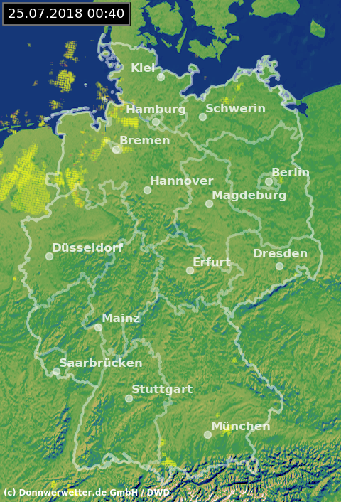 Radarbild von Mittwoch, 25.07.2018 um 00.40 Uhr