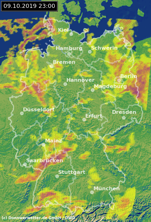 Radarbild von Mittwoch, 10.10.2019 um 23.00 Uhr