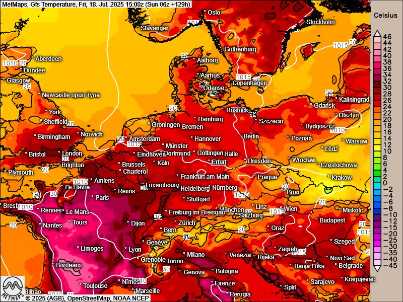 Doch auch ab dann rechnen die Modelle zur Zeit mit sehr unterschiedlichen Wetterverläufen: In der Spitze prognostizieren sie bis zum 22.7. Lufttemperaturen um 32 bis 36 Grad.