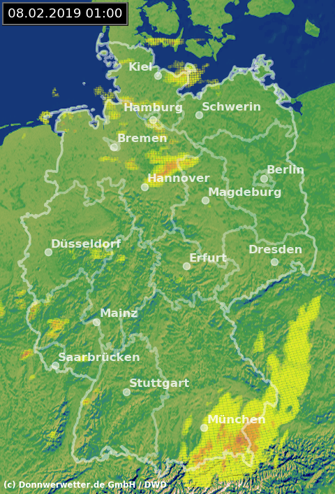 Radarbild von Freitag, 08.02.2019 um 01.00 Uhr