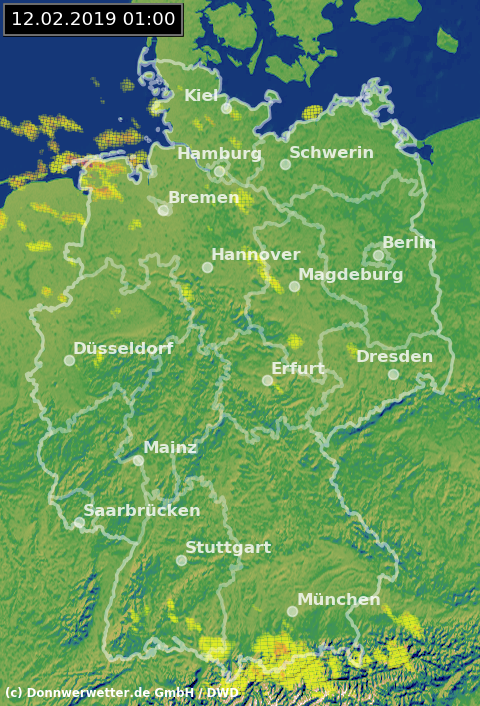 Radarbild von Dienstag, 12.02.2019 um 01.00 Uhr