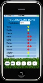 Direkt abfragbar, per GPS oder über 4 Kurzwahltasten schnell verfügbar - und immer postleitzahlengenau. Außerdem beinhaltet die App einen Jahreskalender der häufigsten Pollen mit dem üblichen Verlauf.